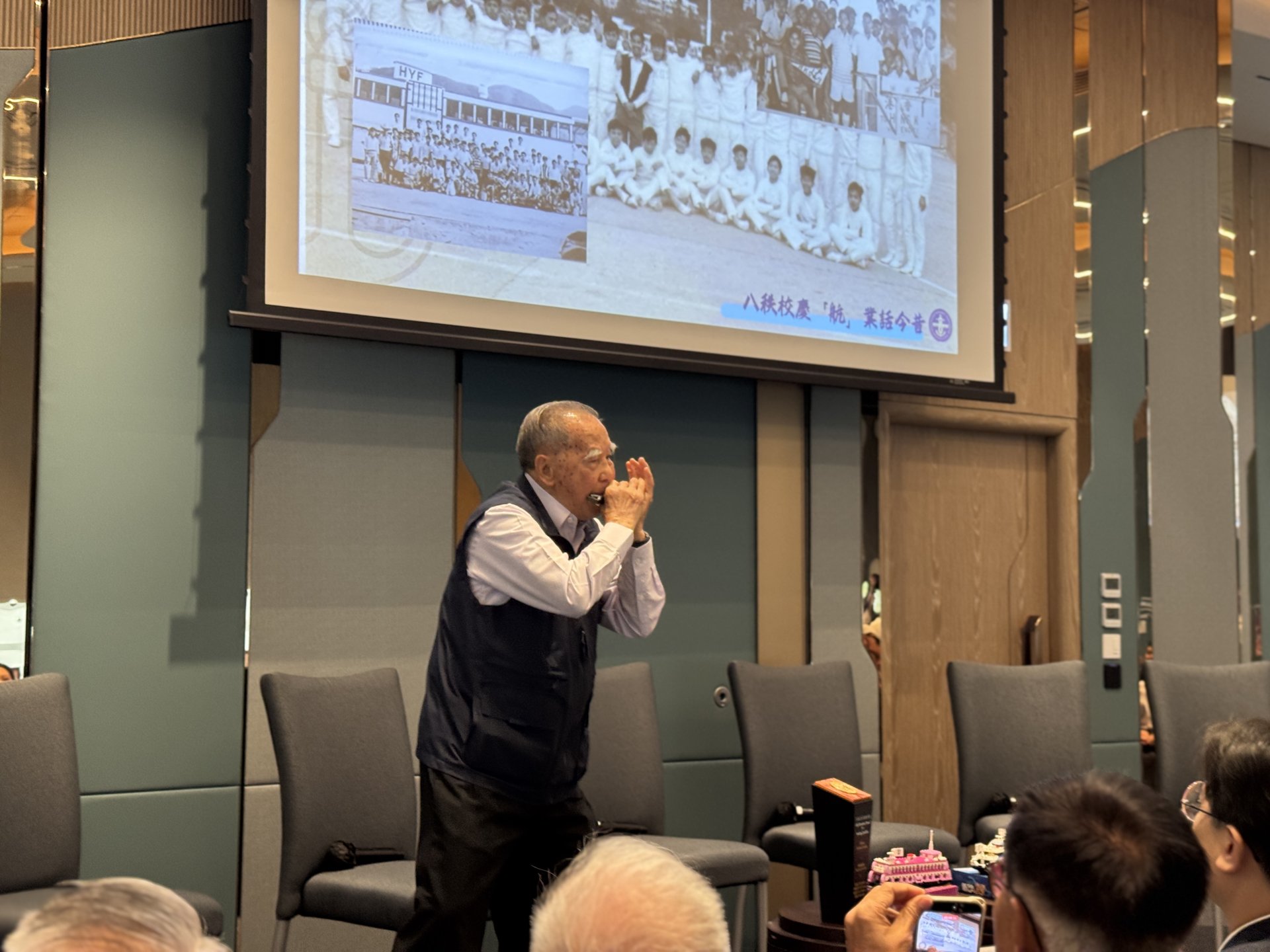 最溫馨的時刻,由曾於本校任職長達3️⃣8️⃣年(1958-1996)的胡嶽渠先生為我們帶來。當他奏起《友誼萬歲》的經典旋律🎶,配以AI技術生成的昔日航校歷史片段🎥,全場無不動容。悠揚的琴聲🎼與珍貴的畫面📺交織,不僅是對八十載師生情誼的最好註解,更是一份歷史的溫情與傳承。